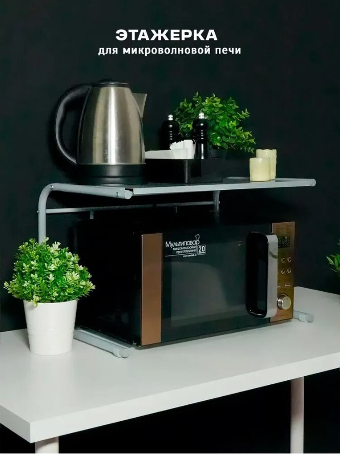 Не упустите возможность улучшить свою кухню с помощью этой практичной и элегантной этажерки для микроволновки. Удобная и функциональная, она поможет навести порядок на вашем столе и сделать готовку более комфортной. Отличный выбор для тех, кто ценит качество и элегантный дизайн.