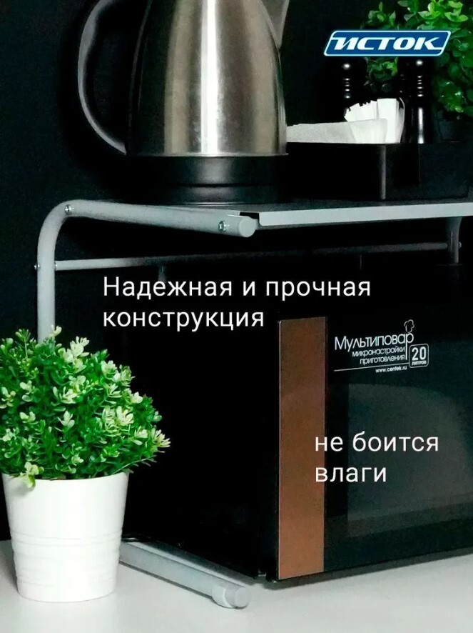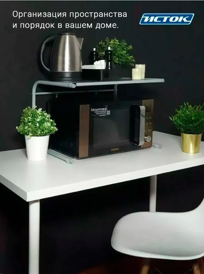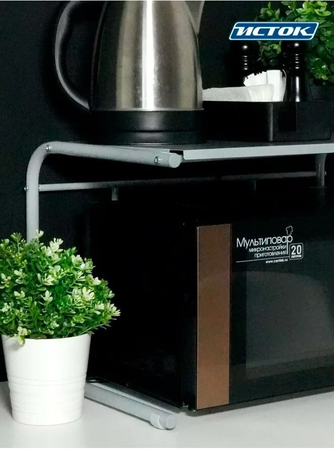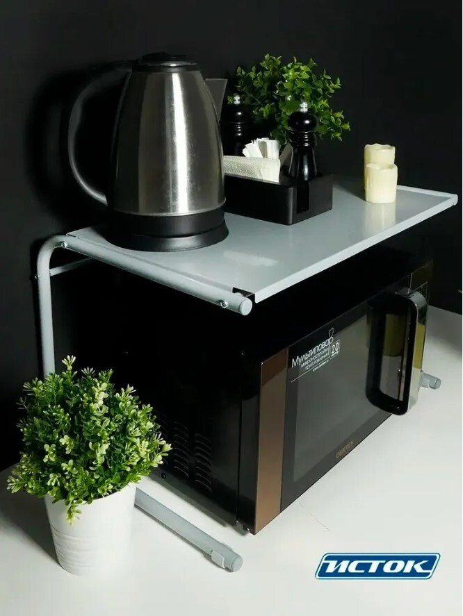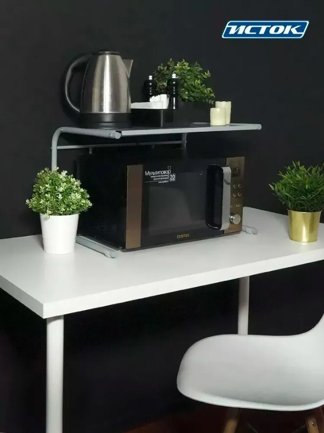 Полка для микроволновки Исток — это идеальный помощник для вашей кухни, объединяющий стиль и функциональность. Размеры изделия 56х38х35 см делают её компактной и удобной для использования на столе, не занимая много места. Настольная этажерка станет отличным решением для организации пространства на кухне.