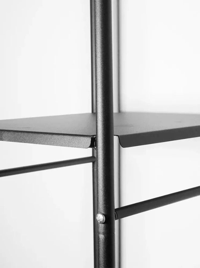 Универсальный дизайн стеллажа легко впишется в интерьеры разных стилей, а благодаря правильным пропорциям, он не займет много места, но при этом предоставит достаточно полезной площади. Металлические полки обеспечивают высокую грузоподъемность и устойчивость, что позволяет с легкостью использовать их для хранения разнообразного инвентаря.