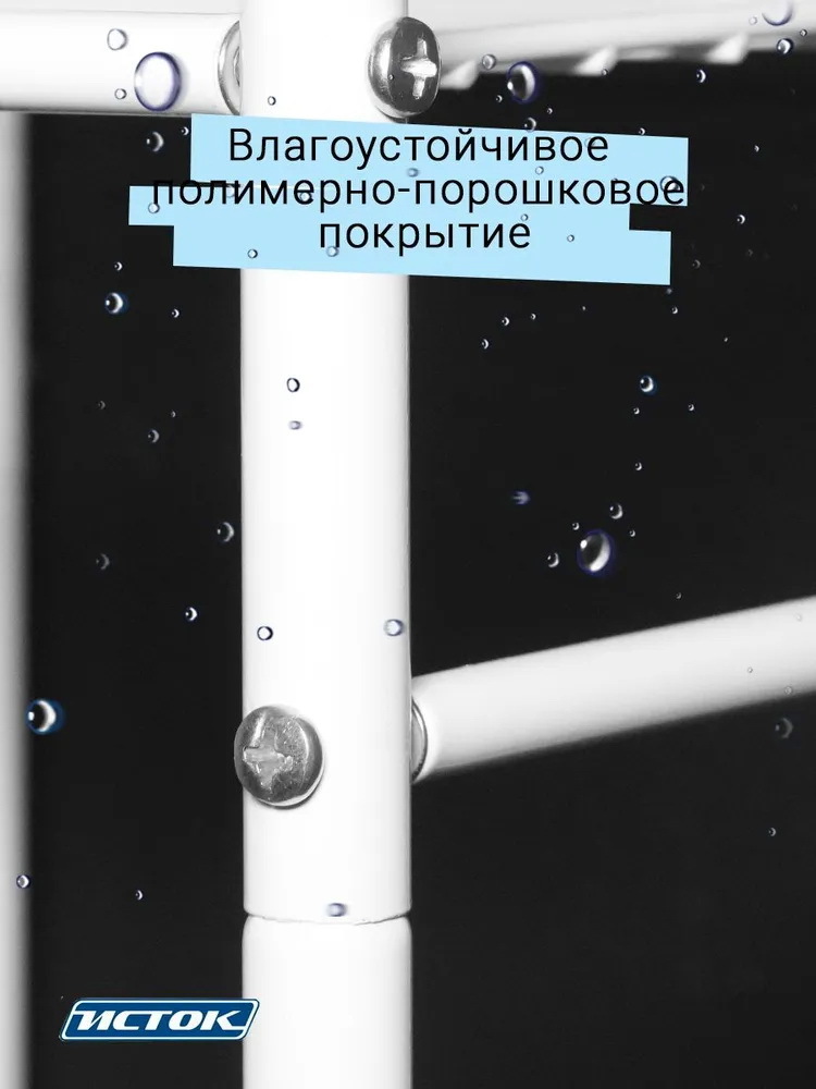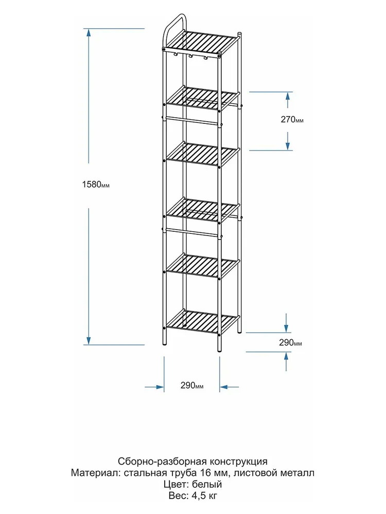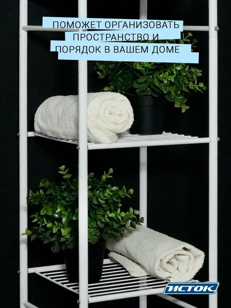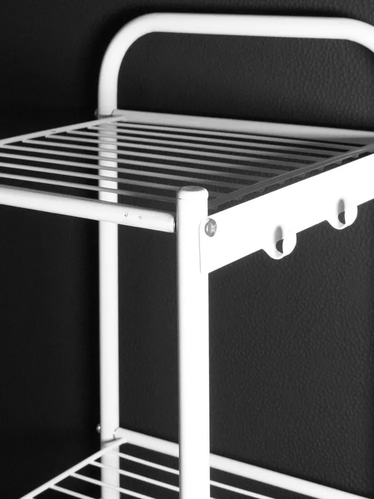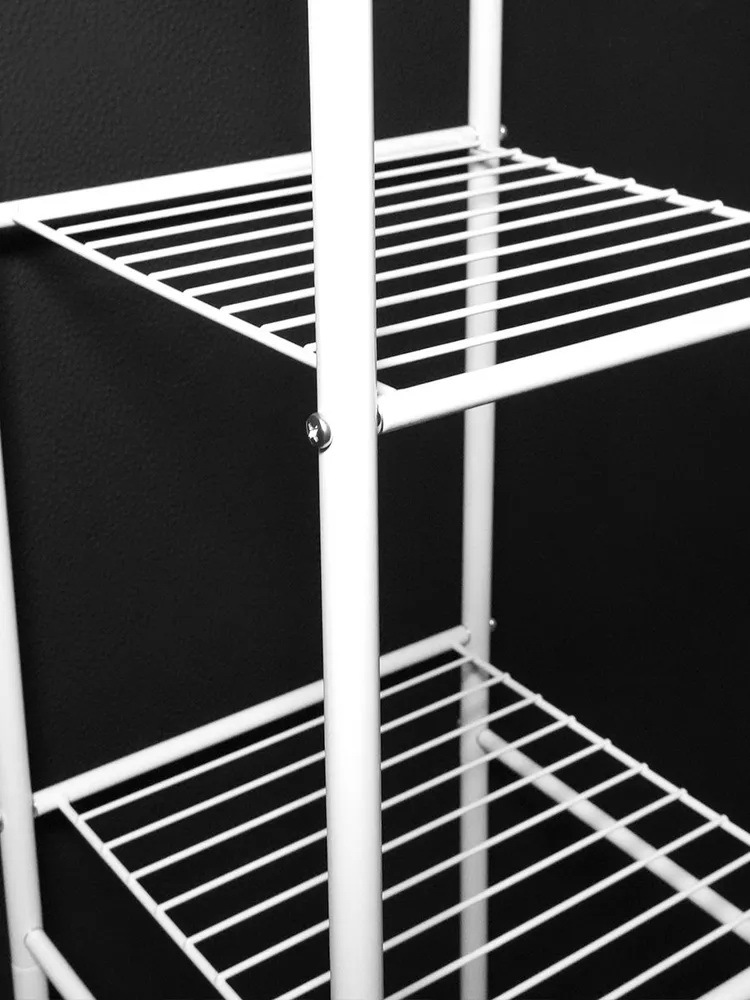 Универсальный дизайн стеллажа легко впишется в интерьеры разных стилей, а благодаря правильным пропорциям, он не займет много места, но при этом предоставит достаточно полезной площади. Металлические полки обеспечивают высокую грузоподъемность и устойчивость, что позволяет с легкостью использовать их для хранения разнообразного инвентаря.