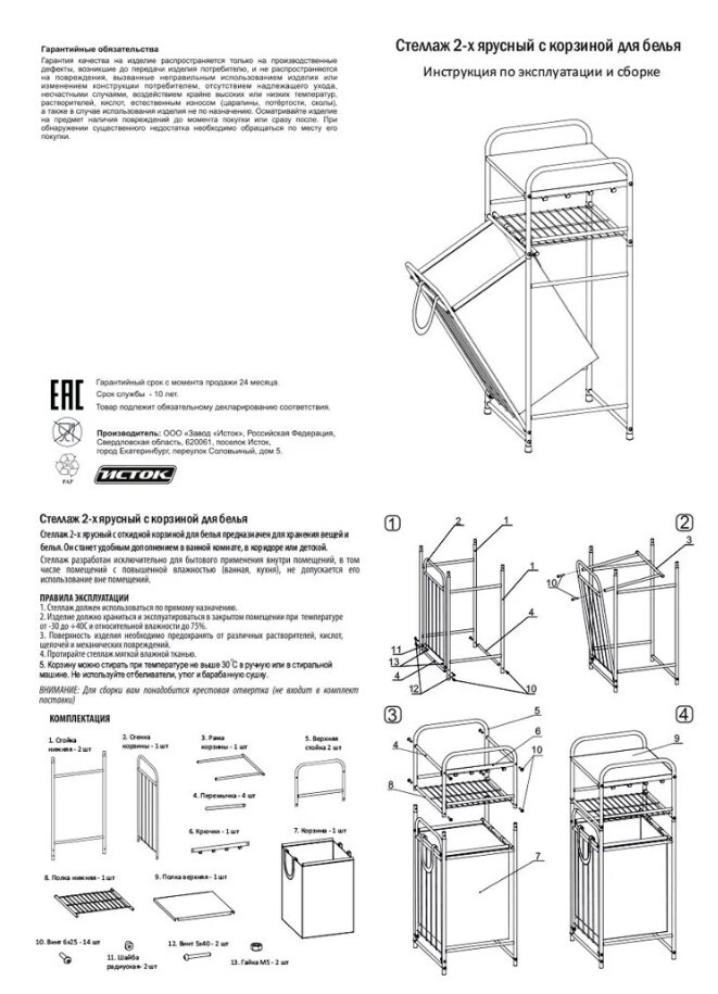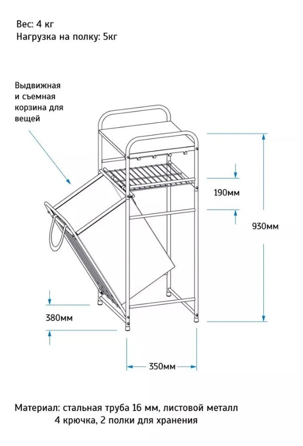 Стеллаж с корзиной для белья 2-х ярусный арт.СК11