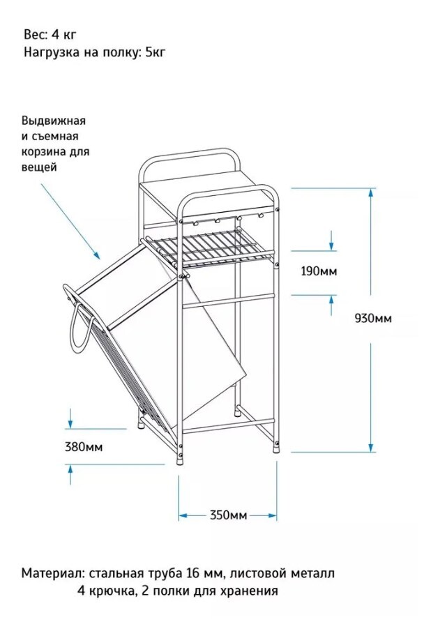 Стеллаж с корзиной для белья 2-х ярусный арт.СК12