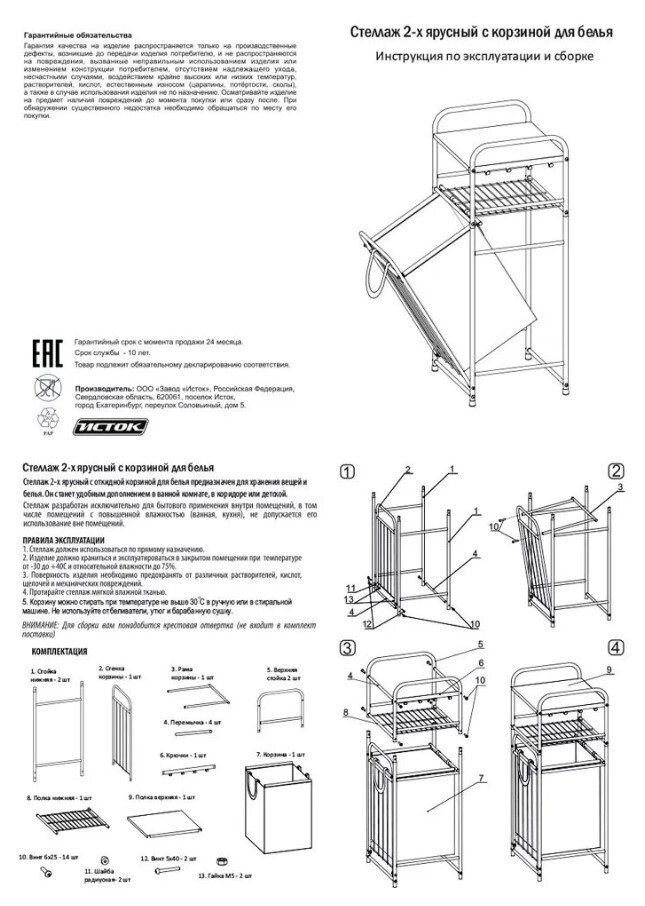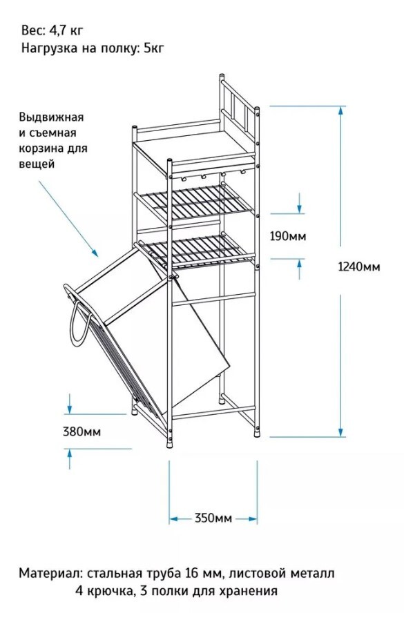 Стеллаж с корзиной для белья Исток — идеальное решение для организации пространства в ванной комнате. Этот напольный металлический стеллаж идеально подходит для тех, кто стремится к порядку и функциональности. Белый цвет конструкции гармонично вписывается в любой интерьер, добавляя свежести и чистоты. Три вместительных яруса позволяют удобно размещать полотенца, косметические средства и бытовую химию, а съемная корзина для белья станет отличным помощником для сбора и хранения грязного белья. Стеллаж изготовлен из прочного металла, что гарантирует его долговечность и устойчивость к влаге, что особенно важно в ванных комнатах с повышенной влажностью. Эргономичный дизайн и качественные материалы делают этот стеллаж не только практичным, но и стильным элементом интерьера. С его помощью ваша ванная комната станет более организованной и аккуратной, избавив вас от хаоса и беспорядка. Купите стеллаж с корзиной для белья Исток и наслаждайтесь упрощенным уходом за ванной комнатой.