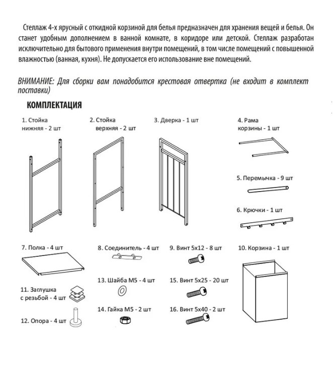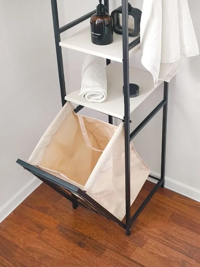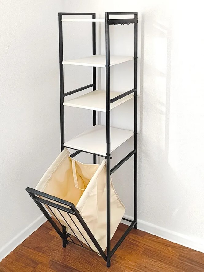 Корзина для белья, сушилка для полотенец, две полки, крючки