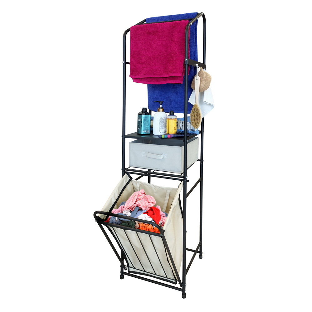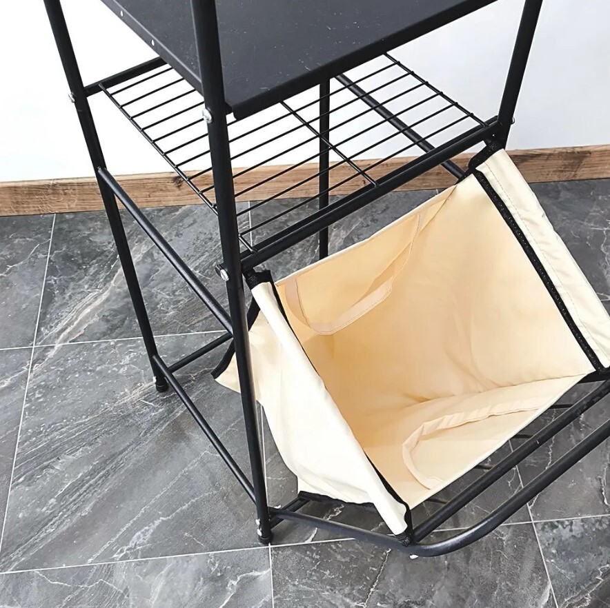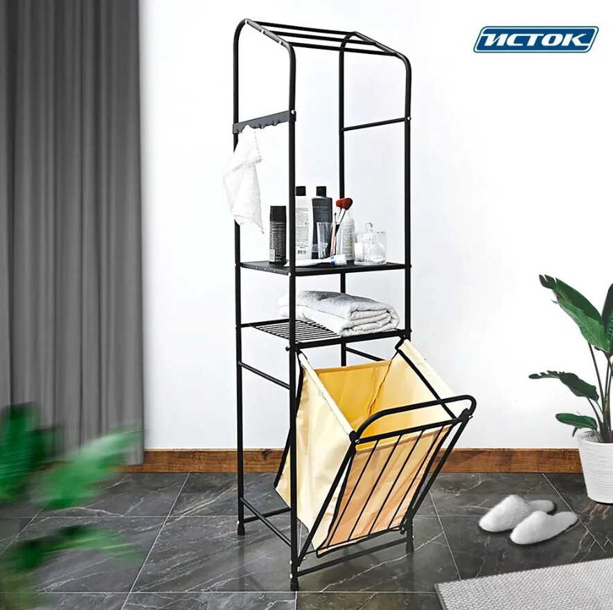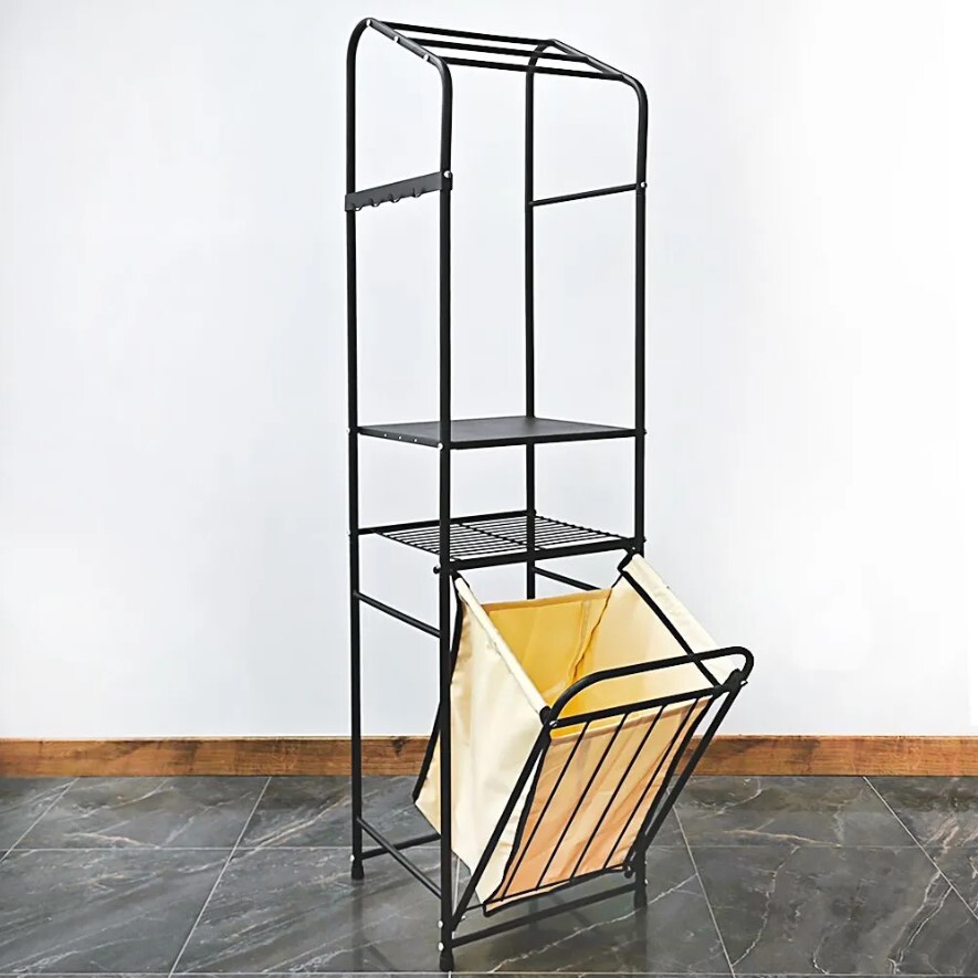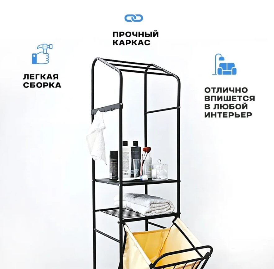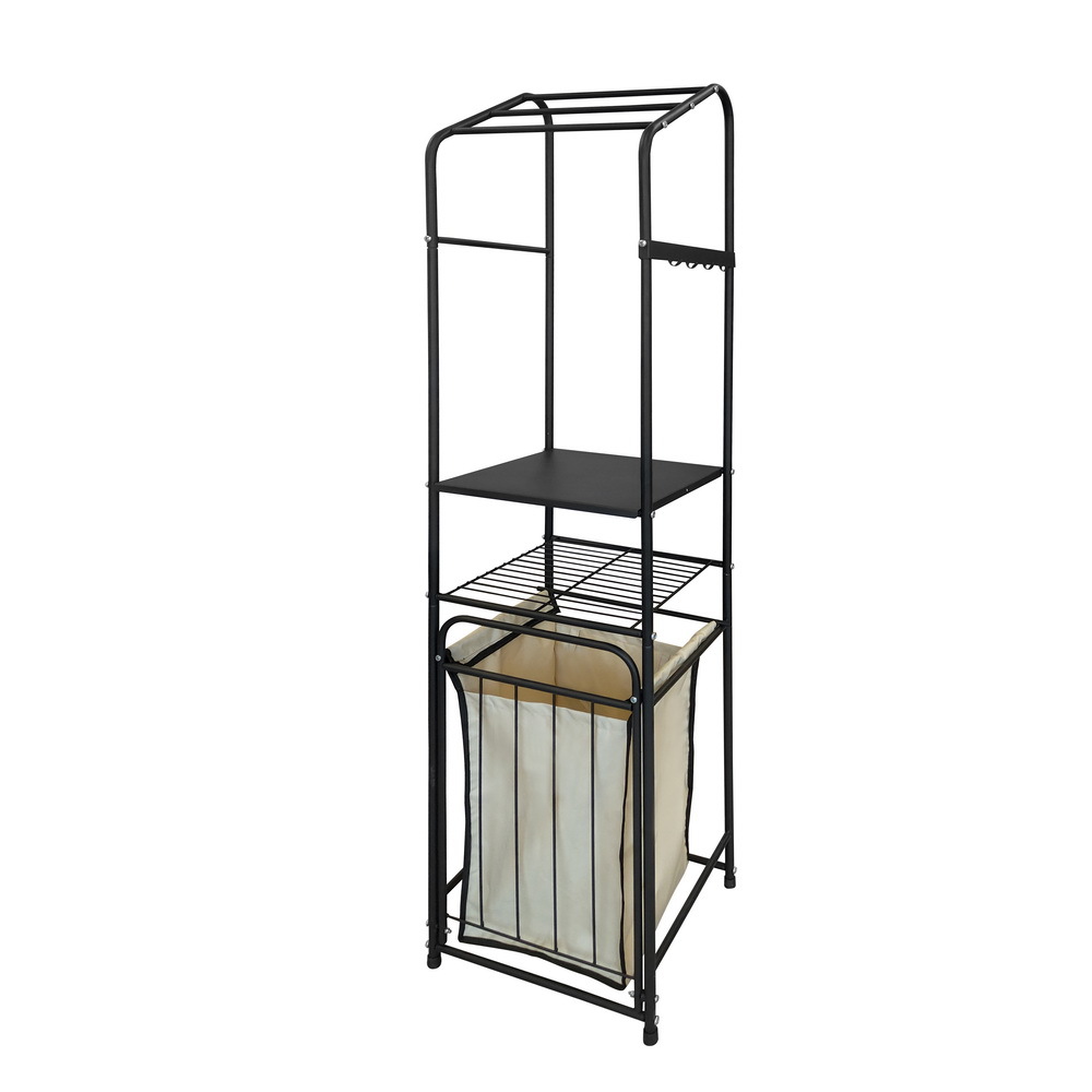 Стеллаж с корзиной для белья и перекладинами 2-х ярусный цвет черный