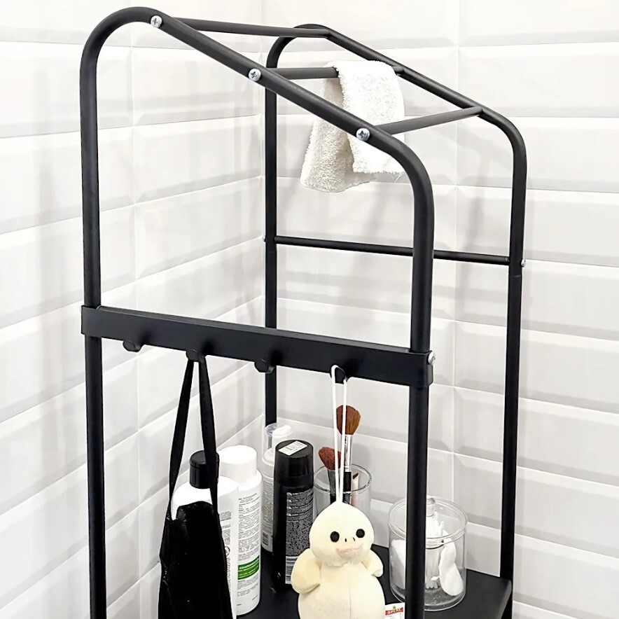 Расширьте функциональность вашей ванной комнаты с этим универсальным двухъярусным стеллажом, который идеально подходит для хранения предметов первой необходимости. Спроектированный с умом, стеллаж включает прочную корзину для белья и несколько перекладин для дополнительных полотенцеполок. Черный цвет конструкции придает ей лаконичный и современный вид, который легко впишется в любой интерьер ванной комнаты. Изготовленный из качественных материалов, этот стеллаж обеспечивает долговечность и устойчивость к влаге. На двух ярусах можно разместить все необходимые предметы – от гелей для душа и шампуней до освежителей воздуха. Простая установка позволяет быстро и легко интегрировать его в ваш дом без необходимости дополнительного инструмента. Компактные размеры делают этот элемент мебели идеальным для небольших пространств, при этом предоставляя достаточно места для организации. Этот продукт станет надежным помощником в поддержании порядка и чистоты в ванной комнате, предлагая множество мест для хранения и аккуратного складывания вещей. Воспользуйтесь шансом оптимизировать пространство и создать более организованную и стильную ванную комнату с помощью этого универсального стеллажа.