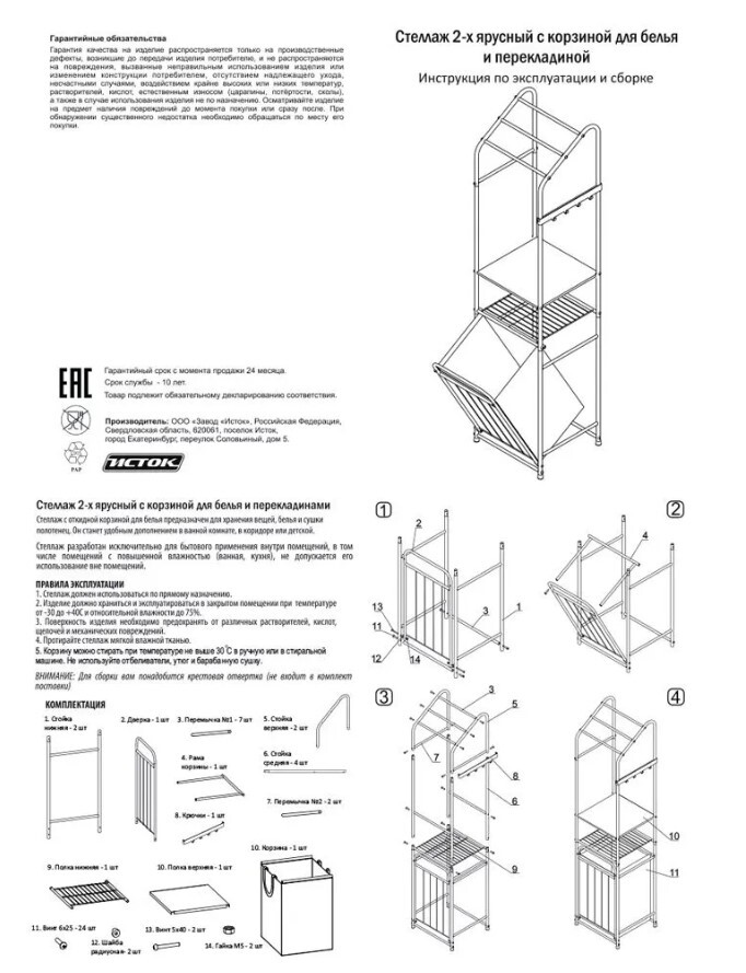 Стеллаж с корзиной для белья и перекладиной 2-х ярусный арт.СКП02