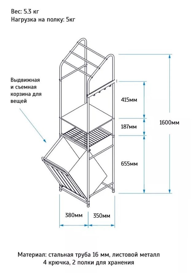 Размер в собранном виде: 380х350х1600 мм