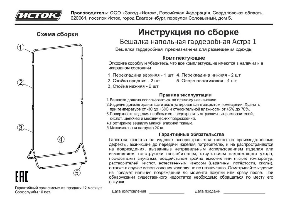 Металлическая гардеробная напольная вешалка "Астра 1" от российского производителя "ИСТОК" создана для открытого хранения повседневной и верхней одежды. Благодаря своему дизайну, функциональности и многообразию цветов рейл отлично впишется в любой интерьер. Вешалку для вещей можно использовать в детской комнате, спальне, гардеробе, коридоре или прихожей. Долговечная, благодаря корпусу из металла, покрытому полимерно-порошковым покрытием. Перекладина выдерживает нагрузку до 20 кг и вмещает порядка 15 плечиков. Ограничители не дадут им соскользнуть на пол. Пластиковый крючок крепится на вешало и предназначен для сумок, зонтов и прочих аксессуаров. Вешалку можно использовать в качестве стойки для отпаривания. Изделие в картонной упаковке с удобной ручкой - легко донести от пункта выдачи до дома и вручить в качестве подарка. Собирается легко по схеме сборки, вся фурнитура и инструмент в комплекте. Мебель продаётся напрямую от производителя, что гарантирует качество и выгодную цену.