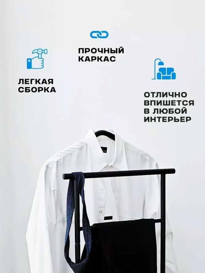 Удобная конструкция позволяет легко перемещать ее, что особенно актуально для небольших пространств. Вы сможете с легкостью разместить ее в нужном месте, а наличие дополнительных элементов для крепления одежды избавит вас от проблем, связанных с тем, как хранить одежду без сминания.