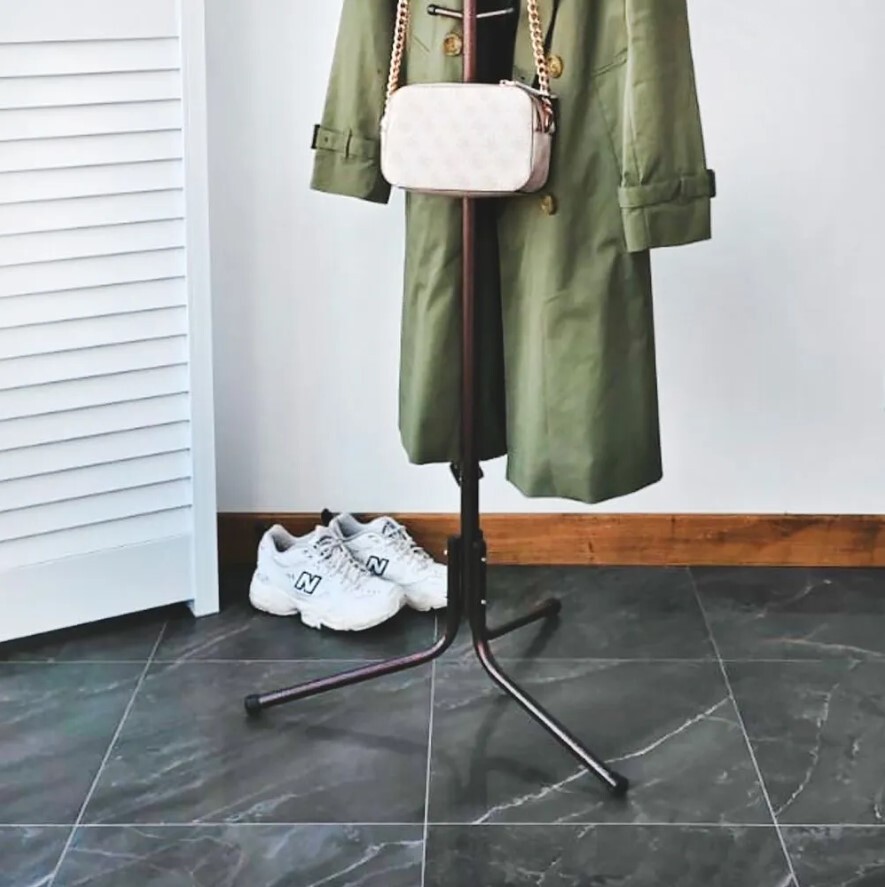 Вешалка предназначена для хранения верхней одежды, включая пальто, куртки и сумки. Напольная конструкция обеспечивает устойчивость и надежность. Эта модель выполняет свою функцию как нельзя лучше, предоставляя удобное место для размещения одежды и аксессуаров, пока вы готовитесь к выходу из дома.