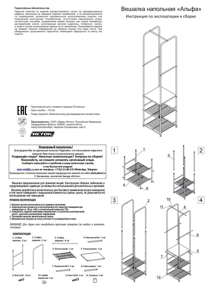 Вешалка напольная Исток Альфа — это ваш верный спутник в создании порядка и уюта.