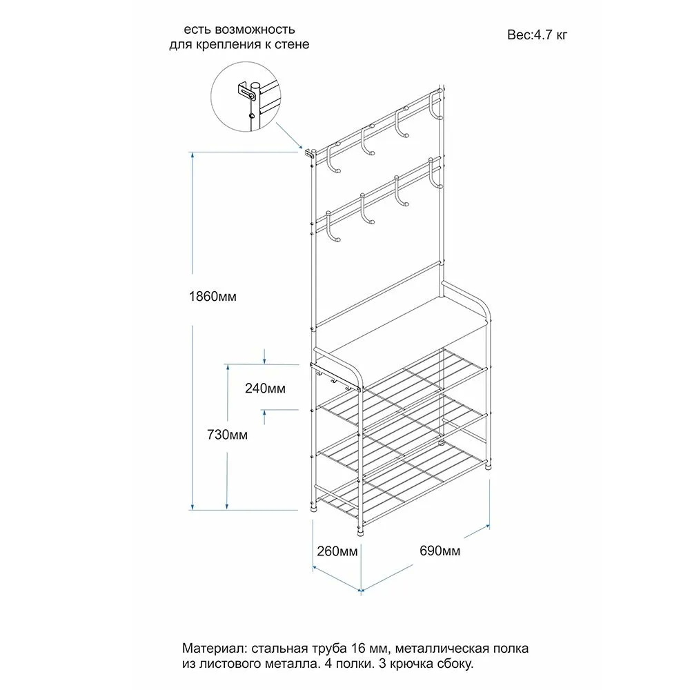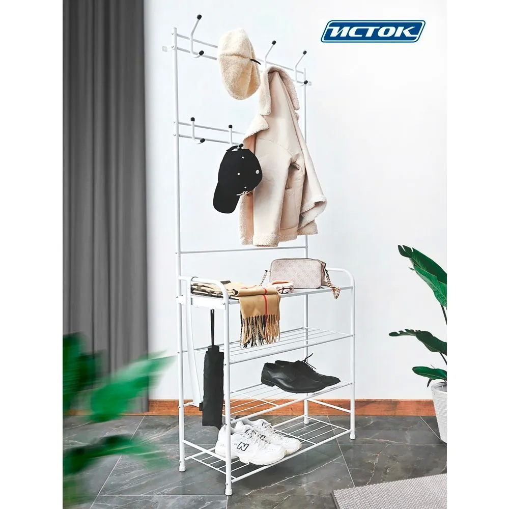 Вешалка в прихожую напольная для одежды Исток Константа - это идеальное решение для тех, кто ценит удобство и порядок. Этот функциональный предмет мебели не только помогает организовать вашу гардеробную систему, но и придаёт стильный акцент вашему интерьеру. Вешалка оснащена прочной конструкцией, которая обеспечивает надежную поддержку для вашей одежды, а просторные полки позволят аккуратно разместить обувь и другие аксессуары. Универсальный дизайн и классические линии изделия органично впишутся в любую прихожую, создавая уютную и аккуратную обстановку.