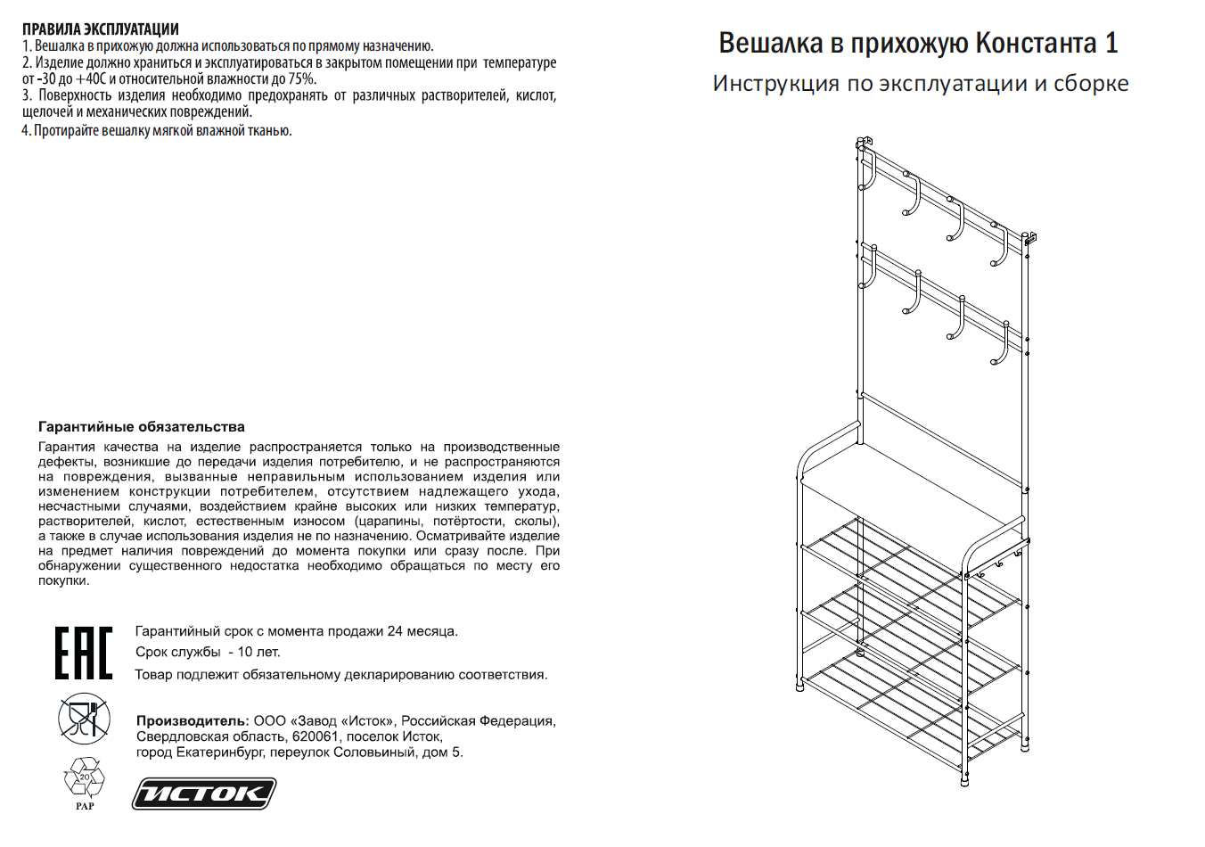 Простота сборки и универсальность установки делают вешалку Исток Константа подходящей для любой квартиры или дома. Она является отличным выбором для тех, кто хочет оптимизировать пространство в прихожей, обеспечивая быстрый доступ ко всем необходимым вещам. Благодаря стильному дизайну эта вешалка гармонично сочетается с различными цветовыми решениями и не занимает много места. Это идеальное решение для небольших квартир и крупных домов, где важно рационально использовать каждый квадратный метр. Вешалка Исток Константа - это сочетание практичности, стиля и удобства для вашего дома.