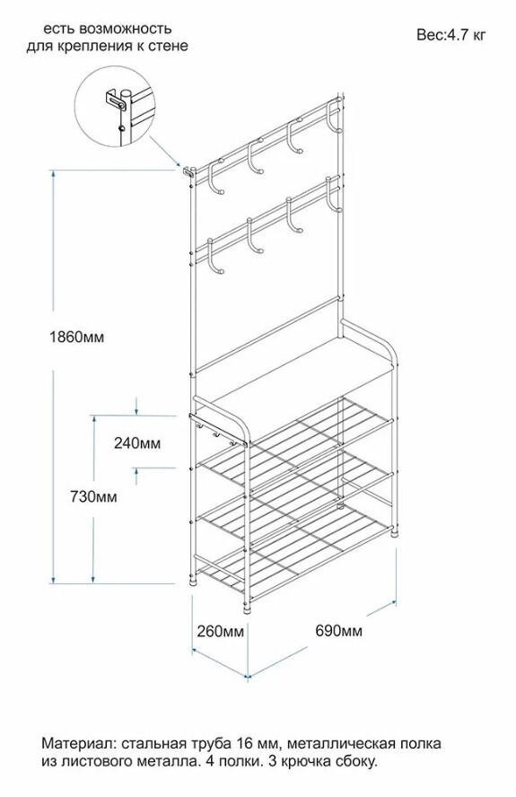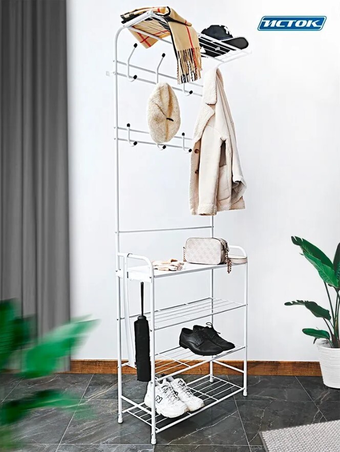 Вешалка в прихожую напольная Исток Константа — это идеальное решение для организации вашего гардероба. Эта функциональная гардеробная система позволяет аккуратно хранить как верхнюю одежду, так и обувь, что делает ее незаменимым предметом мебели в вашей прихожей. Стеллаж с обувницей обеспечивает порядок и экономит пространство, что особенно актуально для небольших помещений. Благодаря прочной конструкции и качественным материалам, данная вешалка прослужит вам долгие годы, при этом сохраняя свой привлекательный внешний вид. Простота сборки и лаконичность дизайна позволяют легко вписать вешалку в любой интерьер, от классического до современного. Напольная конструкция обеспечивает устойчивость и удобство в использовании, а также дополнительно способствует сохранению порядка в вашем доме. Выбирая вешалку Исток Константа, вы обеспечиваете себе практичность и стиль, сделав прихожую более функциональной и уютной.